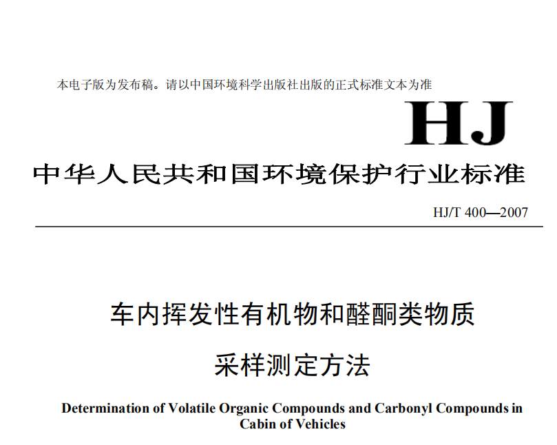HJT 400-2007 車內(nèi)揮發(fā)性有機(jī)物和醛酮類物質(zhì)采樣測(cè)定方法 本標(biāo)準(zhǔn)規(guī)定了測(cè)量機(jī)動(dòng)車乘員艙內(nèi)揮發(fā)性有機(jī)物和醛酮類物質(zhì)的采樣點(diǎn)設(shè)置、采樣環(huán)境條件技術(shù)要求、采樣方法和... 更新日期:2024-02-01 下載包(1)