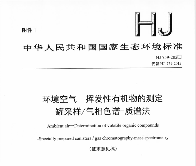 HJ 759—2023環(huán)境空氣 65 種揮發(fā)性有機(jī)物的測定 罐采樣 氣相色譜-質(zhì)譜法 HJ 759—2023環(huán)境空氣 65 種揮發(fā)性有機(jī)物的測定 罐采樣 氣相色譜-質(zhì)譜法 更新日期:2023-03-15 下載包(1)