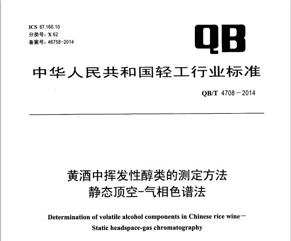 QB/T4708-2014黃酒中揮發(fā)性醇類的測定方法靜態(tài)頂空-氣相色譜法 QB/T4708-2014黃酒中揮發(fā)性醇類的測定方法靜態(tài)頂空-氣相色譜法(2014-11-1實施) ... 更新日期:2020-05-09 下載包(1) 下載包(2)