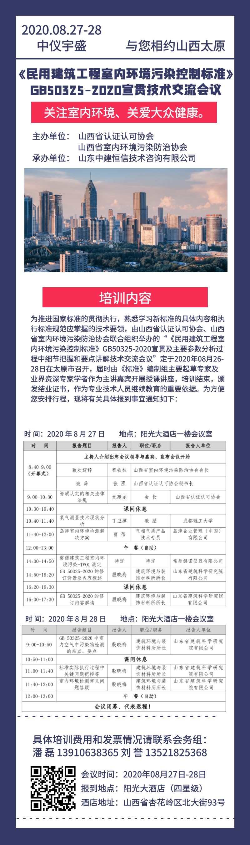 關(guān)注室內(nèi)環(huán)境、關(guān)愛大眾健康。相約太原!《民用建筑工程室內(nèi)環(huán)境污染控制標準》GB50325-2020宣貫技術(shù)交流會議 更新日期:2020-08-26